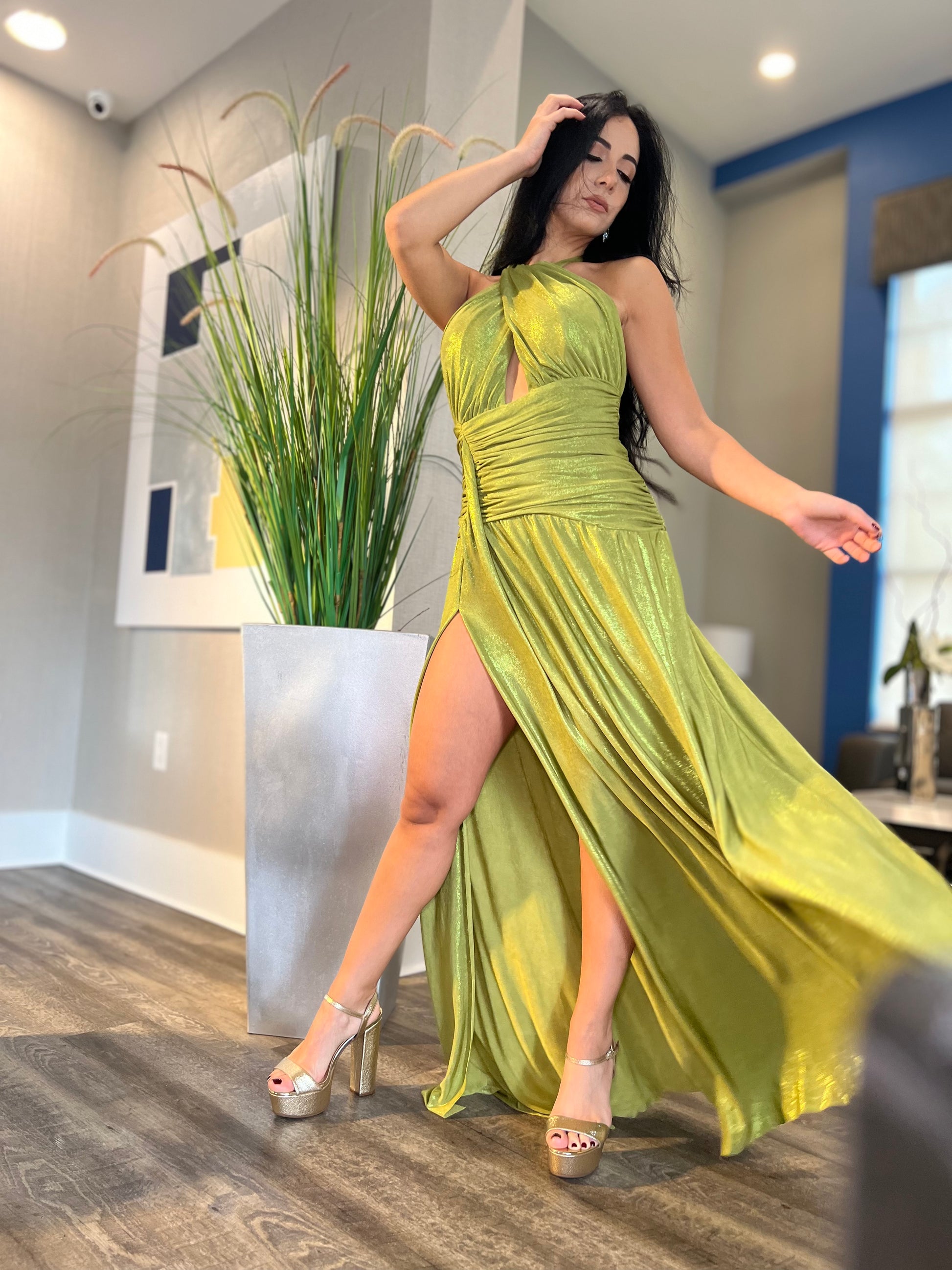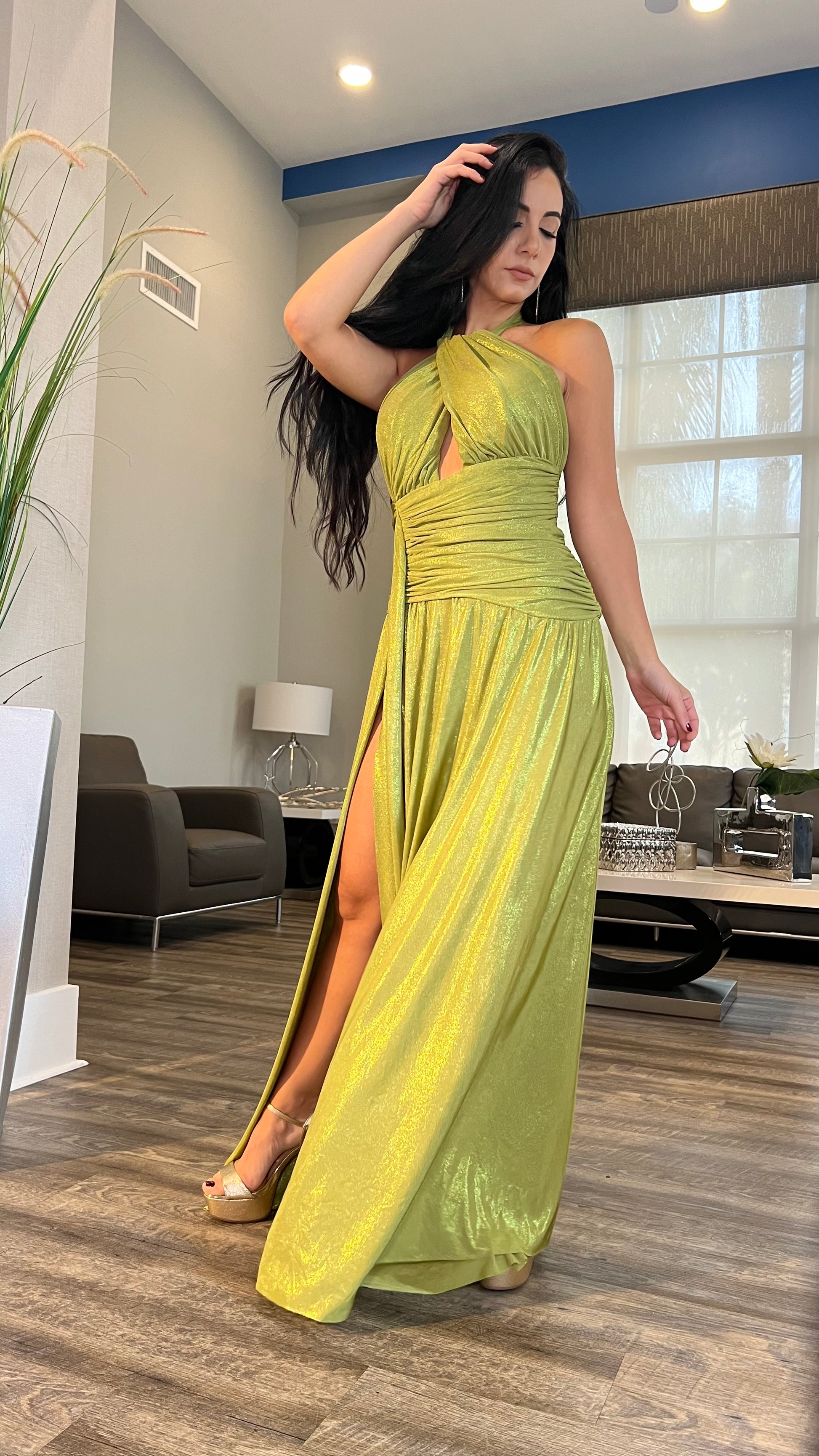 Elevate your style with our luxurious Green Apple Dress. Crafted with a stretchy Gala fabric, this dress features a captivating gala-green hue that will turn heads. The perfect balance of comfort and sophistication, this dress is a must-have for any special occasion.
