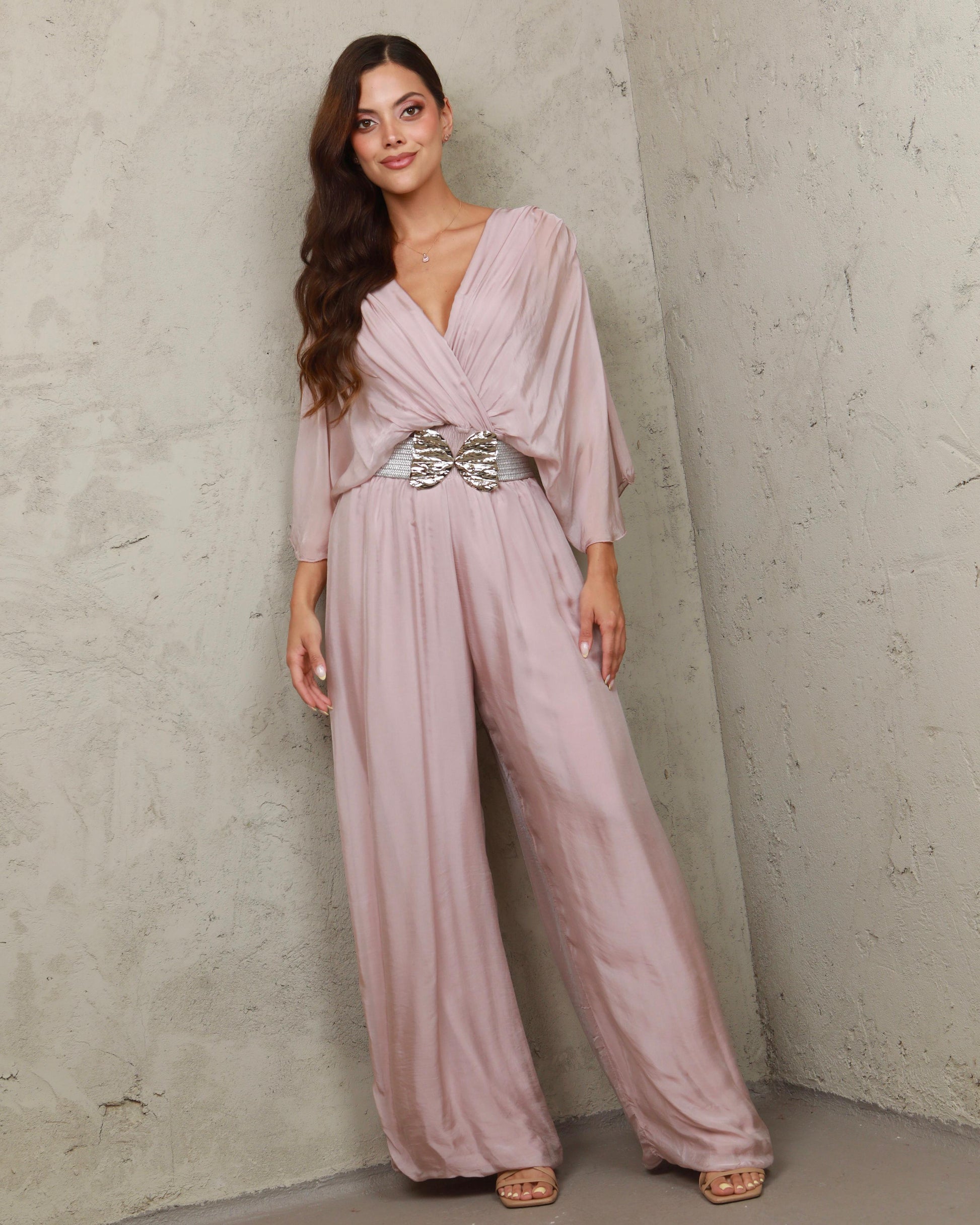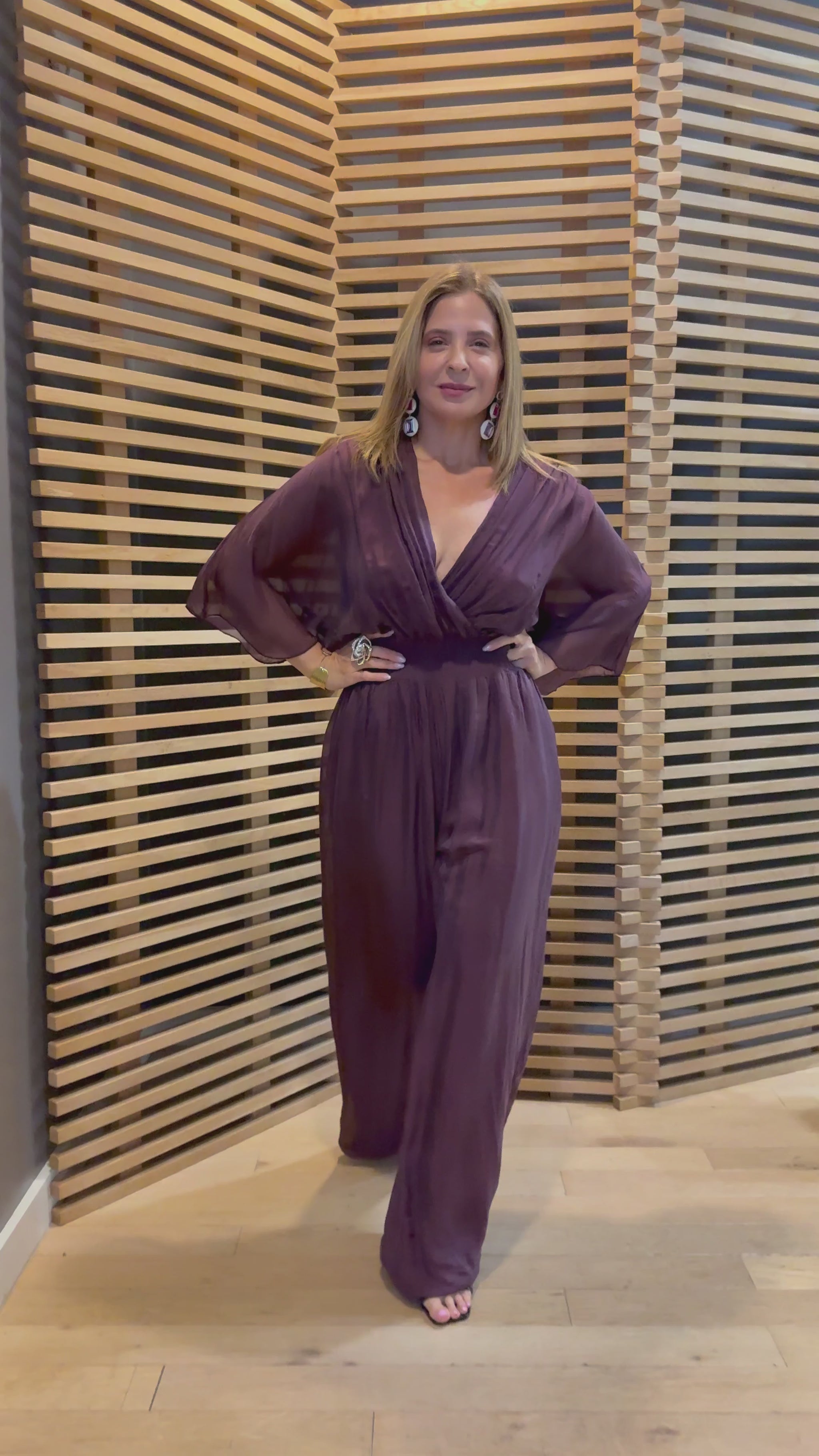 The Helena Silk Jumpsuit combines luxurious silk and breathable linen with a hint of cotton for a refined drape and comfortable feel. Featuring a stretch waist for a flattering one-size fit, this elegant piece offers effortless sophistication without the belt. Perfect for those who appreciate understated style and versatile comfort.