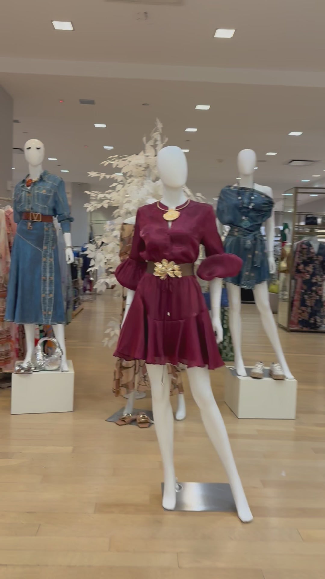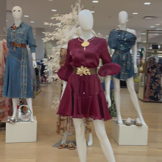 Elevate your wardrobe with the Tira Dress, a sophisticated wine-colored mini dress featuring a long sleeve button-down design. The tie-front waist detail elegantly accentuates your silhouette, blending classic tailoring with contemporary charm. Perfect for both day and evening occasions, this dress offers refined style and flattering fit in one captivating piece.Burgundy color